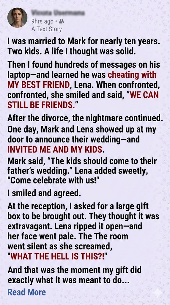When Sarah is invited to the wedding of her ex-husband and ex-best friend, she chooses grace over chaos, or so it seems. In a story about betrayal, resilience, and the power of quiet truth, one woman brings a gift that no one saw coming… and no one will ever forget.