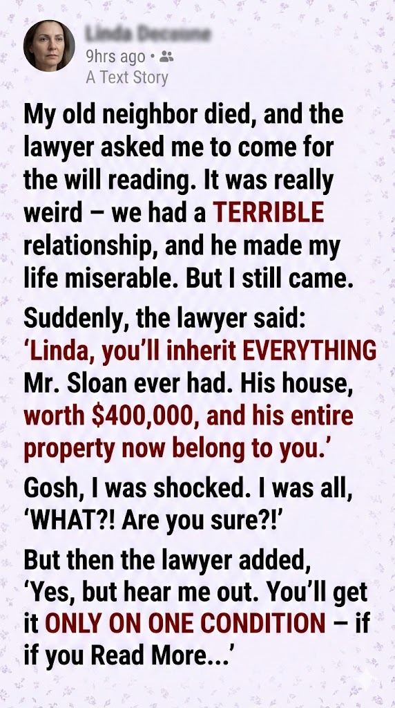 “Linda,” the lawyer said, “you inherit Mr. Sloan’s house. The entire property.”