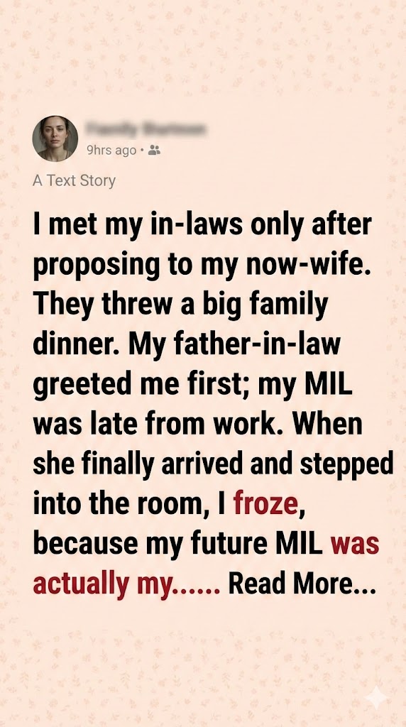 I met my in-laws only after proposing to my now-wife. They threw a big family dinner. My father-in-law greeted me first; my MIL was late from work. When she finally arrived and stepped into the room, I froze, because my future MIL was actually my seatmate from a train ride four years ago—the woman I had one of the deepest conversations of my life with… and then never saw again.