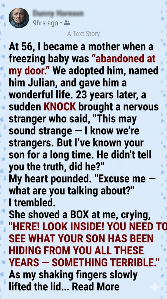 Julian grew up knowing the truth. We told him he was chosen, that he was found in the frost and brought into the warmth. He became a man of few words but deep loyalty—the kind of kid who’d defend the underdog and call us every Sunday from college. We thought the mystery was buried.