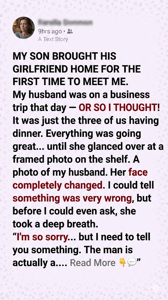 Laura thought meeting her son’s girlfriend would be a joyful milestone. Instead, one family photo exposed a devastating secret: Sophie recognized the man in the frame. He wasn’t just Ryan’s father—he was living a double life. What followed was a night of betrayal, confrontation, and the collapse of a twenty-year marriage.