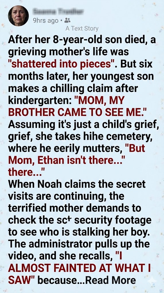 My son had barely been back at kindergarten a week when he climbed into the car and said, “Mom, Ethan came to see me.” Ethan had been dead for six months. Then Noah took my hand at the cemetery, stared at his brother’s grave, and whispered, “But Mom… he isn’t there.”