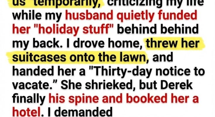 This woman had moved into my home after “a small issue” with her landlord, brought twelve suitcases, taken over my kitchen, criticized my cooking, rearranged my pantry, and complained so constantly about bills that my husband, Derek, had started quietly paying half her personal expenses. Without telling me. The ultimate betrayal was not her constant complaining, but his spineless decision to secretly fund her incredibly lavish lifestyle behind my back while I worked tirelessly.