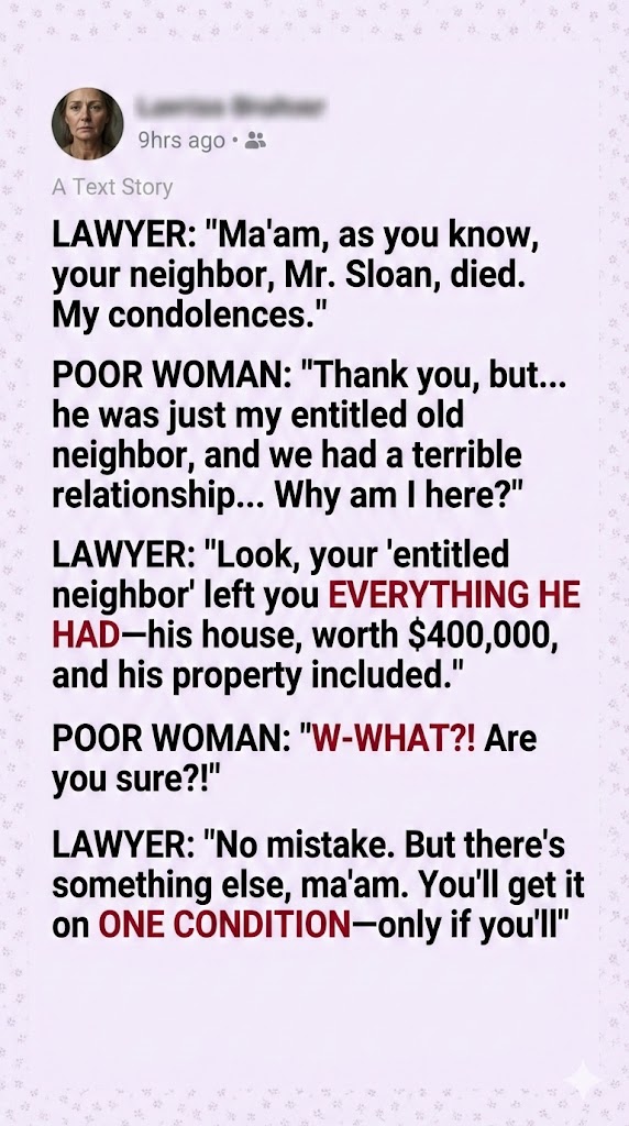 LAWYER: “He couldn’t save her, ma’am. So he spent the last ten years trying to save you. The condition wasn’t about the house. He just wanted to make sure you were safe under a roof for one more year.”