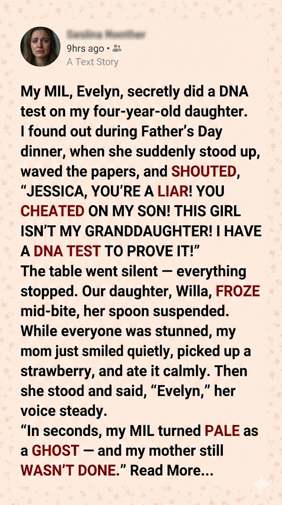 “You cheated on my son. That girl,” she stabbed the air toward Willa. “… that child is not my granddaughter. And I have a DNA test to prove it!”