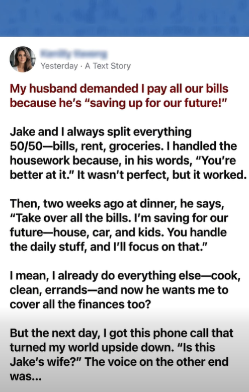 It all began with a strange request over dinner—one that didn’t quite make sense at the time. But the phone call that came just days later was what truly shattered everything I believed about my husband. My husband, Jake, and I had always seen ourselves as modern and fair.