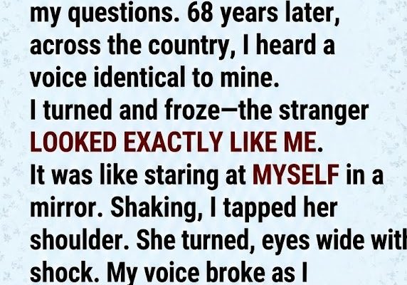 When I Was 5, Police Told My Parents My Twin Had Died – 68 Years Later, I Met a Woman Who Looked Exactly Like Me When I was five, my twin sister walked into the trees behind our house and never came back. The police told my parents her body was found, but I never saw a grave, never saw a coffin. Just decades of silence and a feeling that the story wasn’t really over. I’m Dorothy, 73, and my life has always had a missing piece shaped like a little girl named Ella. Ella was my twin. We were five when she disappeared. We weren’t just “born on the same day” twins. We were share-a-bed, share-a-brain twins. If she cried, I cried. If I laughed, she laughed louder. She was the brave one. I followed. The day she vanished, our parents were at work, and we were staying with our grandmother. I was sick. Feverish, throat on fire. Grandma sat on the edge of my bed with a cool washcloth. “Just rest, baby,” she said. “Ella will play quietly.” Ella was in the corner with her red ball, bouncing it against the wall, humming. I remember the soft thump, the sound of rain starting outside. Then nothing. I fell asleep. When I woke up, the house was wrong. Too quiet. No ball. No humming. “Grandma?” I called. She rushed in, hair mussed, face tight. “Where’s Ella?” I asked. “She’s probably outside,” she said. “You stay in bed, all right?” Her voice shook. I heard the back door open. “Ella!” Grandma called. No answer. “Ella, you get in here right now!” Her voice climbed. Then footsteps, fast and frantic. I got out of bed. The hallway felt cold. By the time I reached the front room, neighbors were at the door. Mr. Frank knelt in front of me. “Have you seen your sister, sweetheart?” he asked. I shook my head. Then the police came. Blue jackets, wet boots, radios crackling. Questions I didn’t know how to answer. “What was she wearing?” “Where did she like to play?” “Did she talk to strangers?” Behind our house, a strip of woods ran along the property. People called it “the forest,” like it was endless, but it was just trees and shadows. That night, flashlights bobbed through the trunks. Men shouted her name into the rain. They found her ball. That’s the only clear fact I was ever given. The search went on. Days, weeks. Time blurred. Everyone whispered. No one explained. I remember Grandma crying at the sink, whispering, “I’m so sorry,” over and over. I asked my mother once, “When is Ella coming home?” She was drying dishes. Her hands stopped. “She’s not,” she said. “Why?” My father cut in. “Enough,” he snapped. “Dorothy, go to your room.” Later, they sat me down in the living room. My father stared at the floor. My mother stared at her hands. “The police found Ella,” she said. “Where?” “In the forest,” she whispered. “She’s gone.” “Gone where?” I asked. My father rubbed his forehead. “She died,” he said. “Ella died. That’s all you need to know.” I didn’t see a body. I don’t remember a funeral. No small casket. No grave I was taken to. One day I had a twin. The next, I was alone. Her toys disappeared. Our matching clothes vanished. Her name stopped existing in our house. At first, I kept asking. “Where did they find her?” “What happened?” “Did it hurt?” My mother’s face shut down. “Stop it, Dorothy,” she’d say. “You’re hurting me.” I wanted to scream, “I’m hurting too.” Instead, I learned to shut up. Talking about Ella felt like dropping a bomb in the middle of the room. So I swallowed my questions and carried them. I grew up like that. On the outside, I was fine. I did my homework, had friends, didn’t cause trouble. Inside, there was this buzzing hole where my sister should have been. When I was 16, I tried to fight the silence. I walked into the police station alone, palms sweating. The officer at the front desk looked up. “Can I help you?” “My twin sister disappeared when we were five,” I said. “Her name was Ella. I want to see the case file.” He frowned. “How old are you, sweetheart?” “Sixteen.” He sighed. “I’m sorry,” he said. “Those records aren’t open to the public. Your parents would have to request them.” “They won’t even say her name,” I said. “They told me she died. That’s it.” His expression softened. “Then maybe you should let them handle it,” he said. “Some things are too painful to dig up.” I walked out feeling stupid and more alone than before. “Why dig up that pai In my twenties, I tried my mother one last time. We were on her bed, folding laundry. I said, “Mom, please. I need to know what really happened to Ella.” She went still. “What good would that do?” she whispered. “You have a life now. Why dig up that pain?” “Because I’m still in it,” I said. “I don’t even know where she’s buried.” She flinched. “Please don’t ask me again,” she said. “I can’t talk about this.” So I didn’t. Life pushed me forward. I finished school, got married, had kids, changed my name, paid bills. I became a mom. Then a grandmother. On the outside, my life was full. But there was always a quiet place in my chest shaped like Ella. Sometimes I’d set the table and catch myself putting out two plates. Sometimes I’d wake up at night sure I’d heard a little girl call my name. Sometimes I’d look in the mirror and think, This is what Ella might look like now. My parents died without ever telling me more. Two funerals. Two graves. Their secrets went with them. For years, I told myself that was it. A missing child. A vague “they found her body.” Silence. Then my granddaughter got into a college in another state. “Grandma, you have to come visit,” she said. “You’d love it here.” “I’ll come,” I promised. “Someone has to keep you out of trouble.” A few months later, I flew out. We spent a day setting up her dorm, arguing about towels and storage b